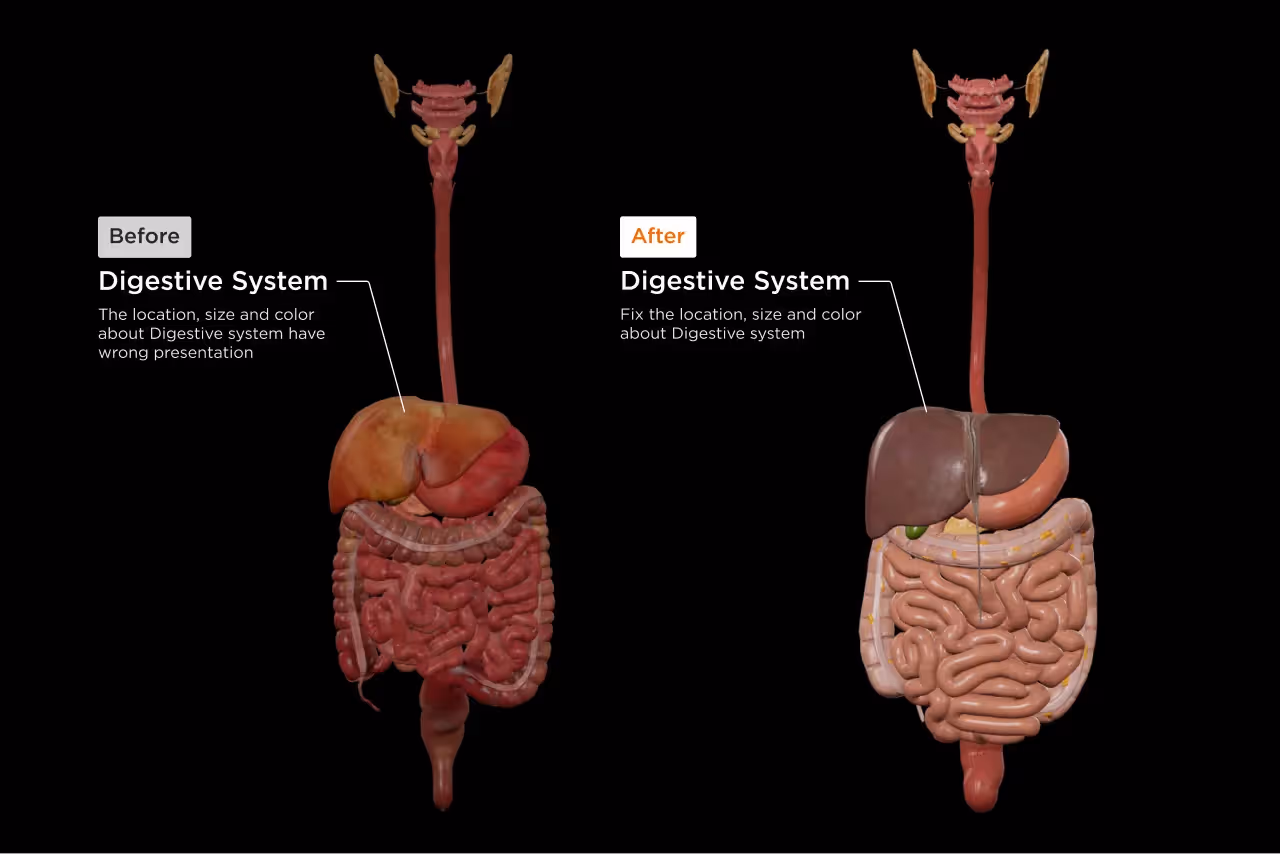 In addition to these newly added structures, we’ve optimized 1,500 existing structures in the male model, particularly those in the Digestive System, by adding more intricate details to organs like the large and small intestines. When you zoom in on these structures, you can closely observe even the finest details of their inner surface, such as wrinkles. Furthermore, we’ve improved the performance for smoother access to structures within the body systems.